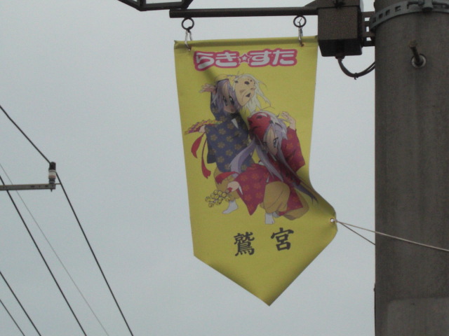 自分で再現しようと思って、 ヤフオクでストームフォームとフレイムフォーム競り落としたって言うのに・・・・・・ なんてこったいorz なぜかいまさら行って参りました、鷲宮神社 でも参拝はしていない 今年家族に不幸があったから鳥居をくぐる訳には行かなかったのさ 別にここに用事があったわけでもそんなに来たかったわけでもない ただ今日はバイクで遠乗りしてこようと思ったんだけど、どっか目的地を定めないとナビ使えないし、 それで思いついたのがここだったという とはいえナビ使ってもどうにも要領が悪いので、道間違えたり左折右折を行過ぎること数回、 かなり時間がかかった そして、ここに行く過程で初めて高速に乗ってえらいテンパッた 料金所でパニクッたり、横風えらい吹いてたり、寒かったり・・・・・・ こんなに緊張したのってかなり久しぶりだったよ 最初に書いたけど、鳥居をくぐるわけにはいかないので鳥居前の道をちょっと散歩 鳥居に向かって右手側の建物で発見 鳥居の前の通りに垂れ下がっていたもの あと人様のものだから写真は撮ってないけど、 神社の駐車場には初音ミクや知らない作品の痛車が数台停まってた 最近はあんまり騒がれてるの聞いたこと無いけど、聖地は健在なんだなぁと思ったり・・・・・・ ここからの帰路に着いたときも1台、オーガストの痛車とすれ違った 当然っちゃ当然なんだけど、痛車って本当に乗ってる人いるんだと思ったり・・・・・ ちなみに帰ってくるときは特にテンパることも無く、スムーズに帰ってきました やっぱ何事も経験だね |